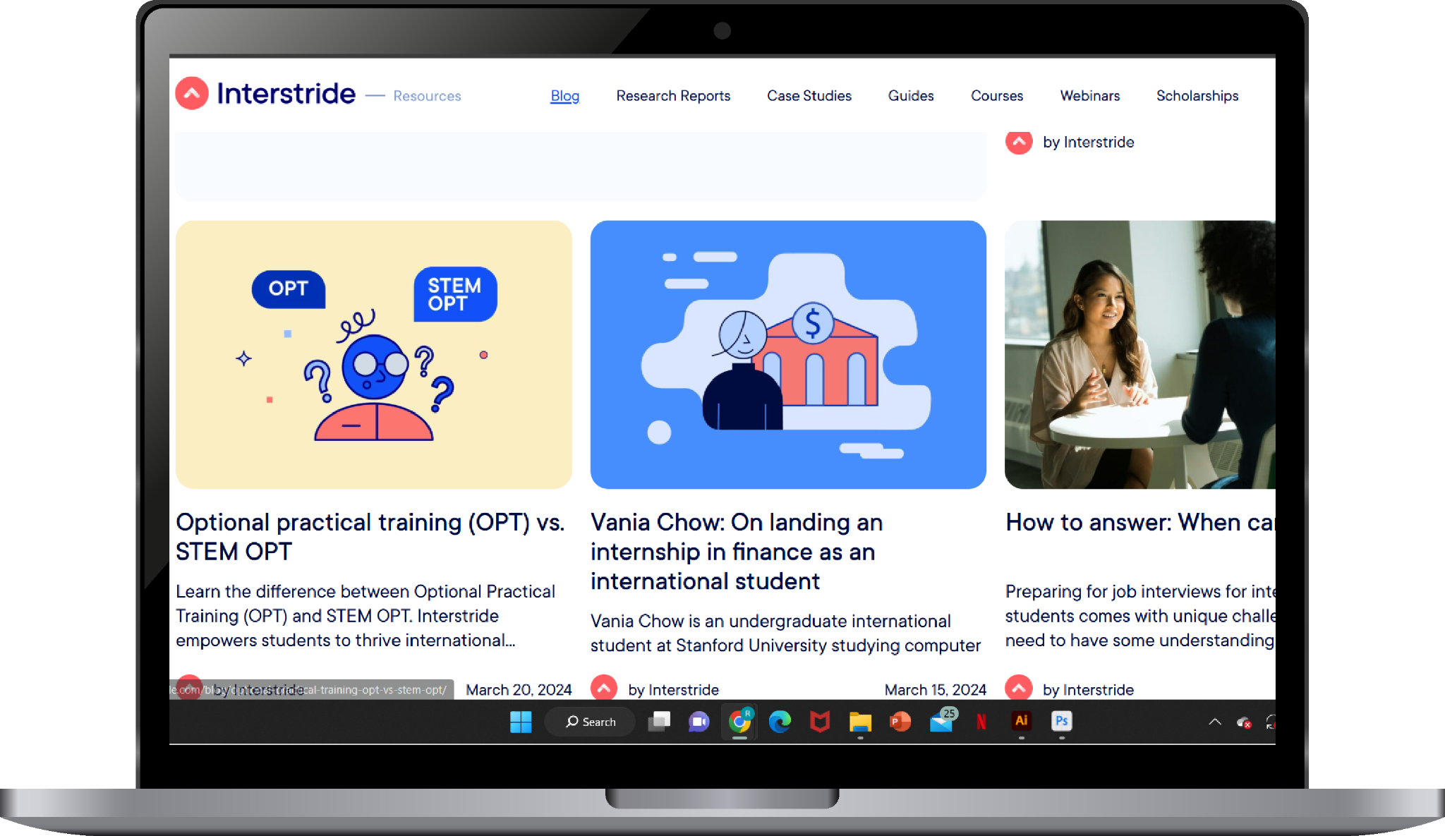 Interstride is a digital platform designed to support international students throughout their academic and professional journeys. With tools for job searching, networking, and immigration guidance, Interstride empowers students to navigate global opportunities with confidence.